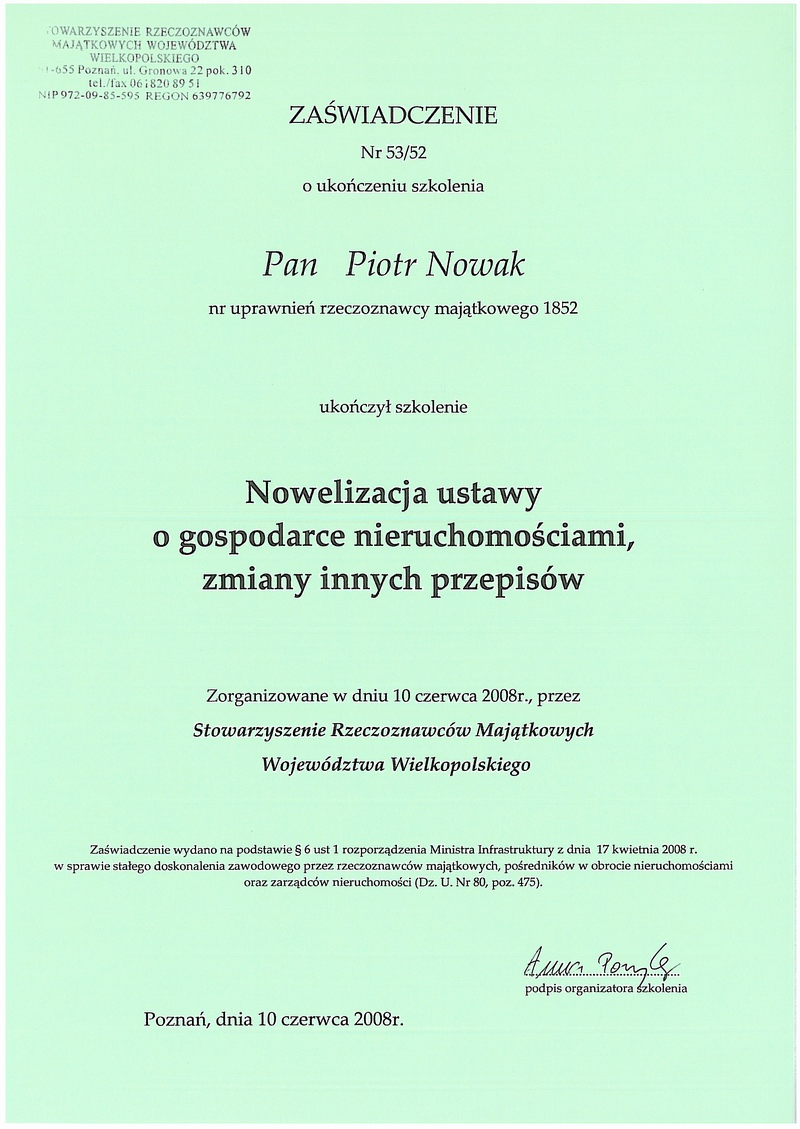 - Zagospodarowanie i odtwarzanie majątku Zasobu Własności Rolnej Skarbu Państwa w dzierżawie (na przykładzie Oddziału Terenowego AWRSP w Poznaniu w latach 1995-2002) – Journal of Agribusiness and Rural Development, Wydawnictwo Uniwersytetu Przyrodniczego w Poznaniu nr 4/2008.